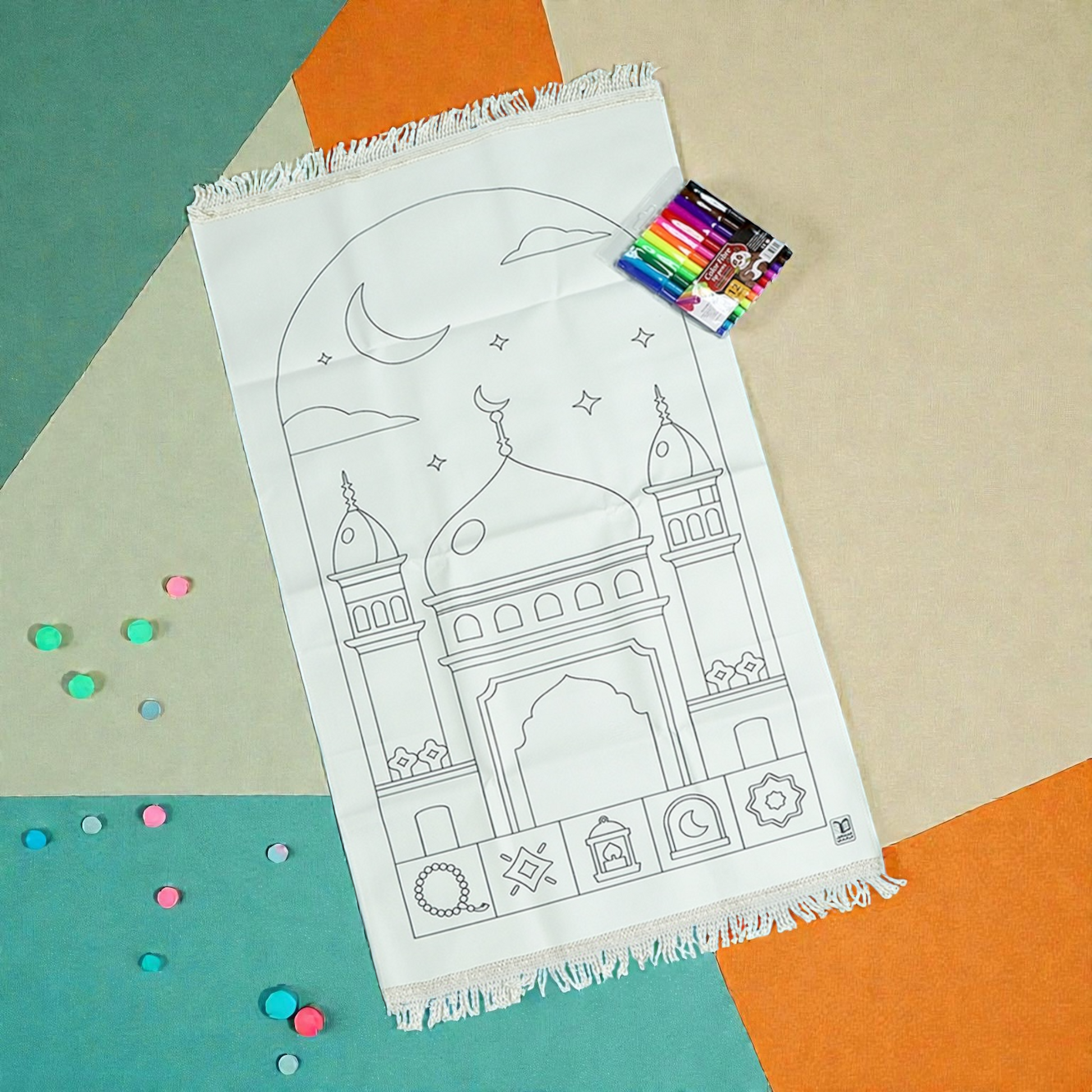 يحتوي على 10 كتب تربوية، سجادة صلاة للتلوين، بوسترات تعليمية، زينة رمضانية، وأنشطة تفاعلية متنوعة.